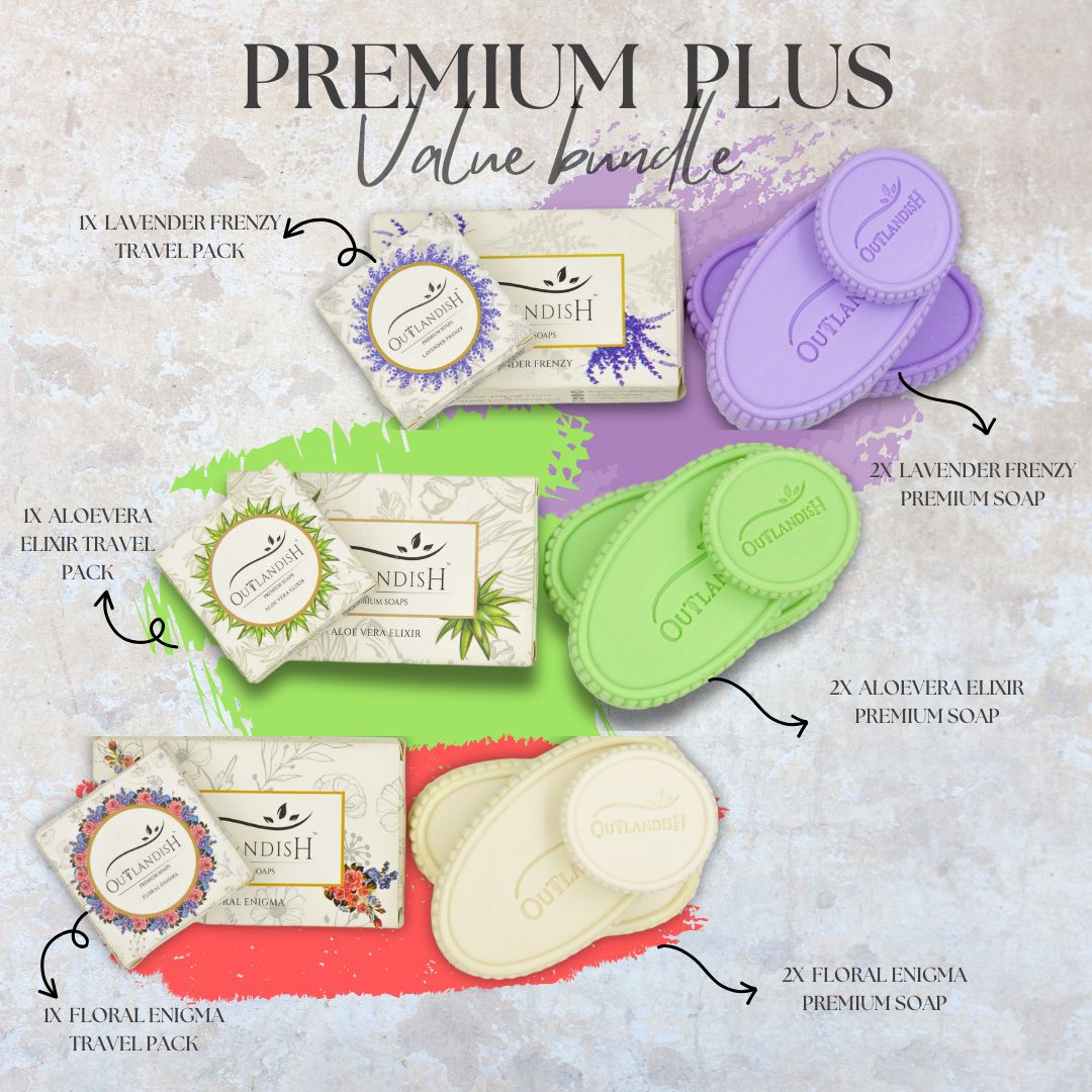 - Includes nine soaps: two each of Aloe Vera Elixir, Floral Enigma, and Lavender Frenzy, plus one each of their travel packs.